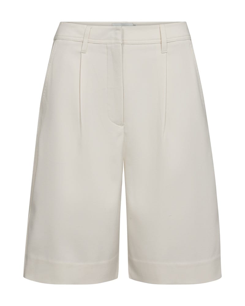 Bermuda van Copenhage Muse met een knoop- en ritssluiting, bandplooien, steekzakken en een paspelzak aan de achterzijde.