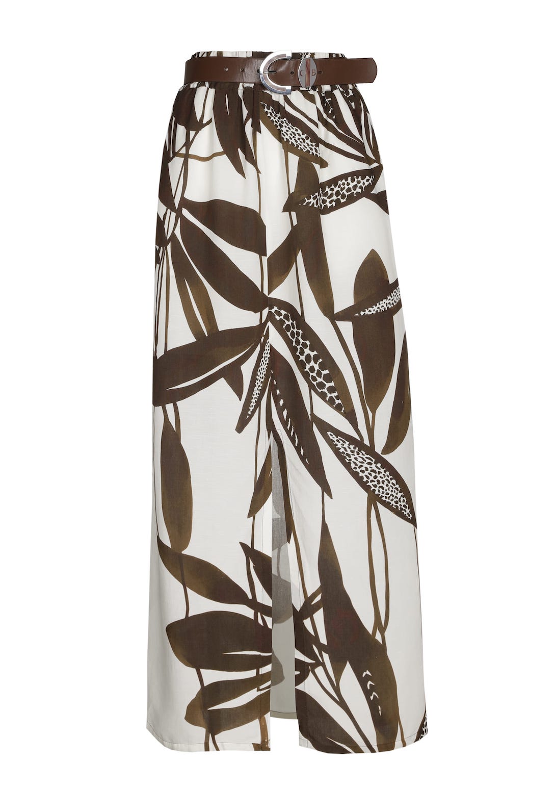 Botanische rok van Caroline Biss met steekzakken, hoge split aan de voorzijde en een elastische tailleband voorzien van ceintuur.