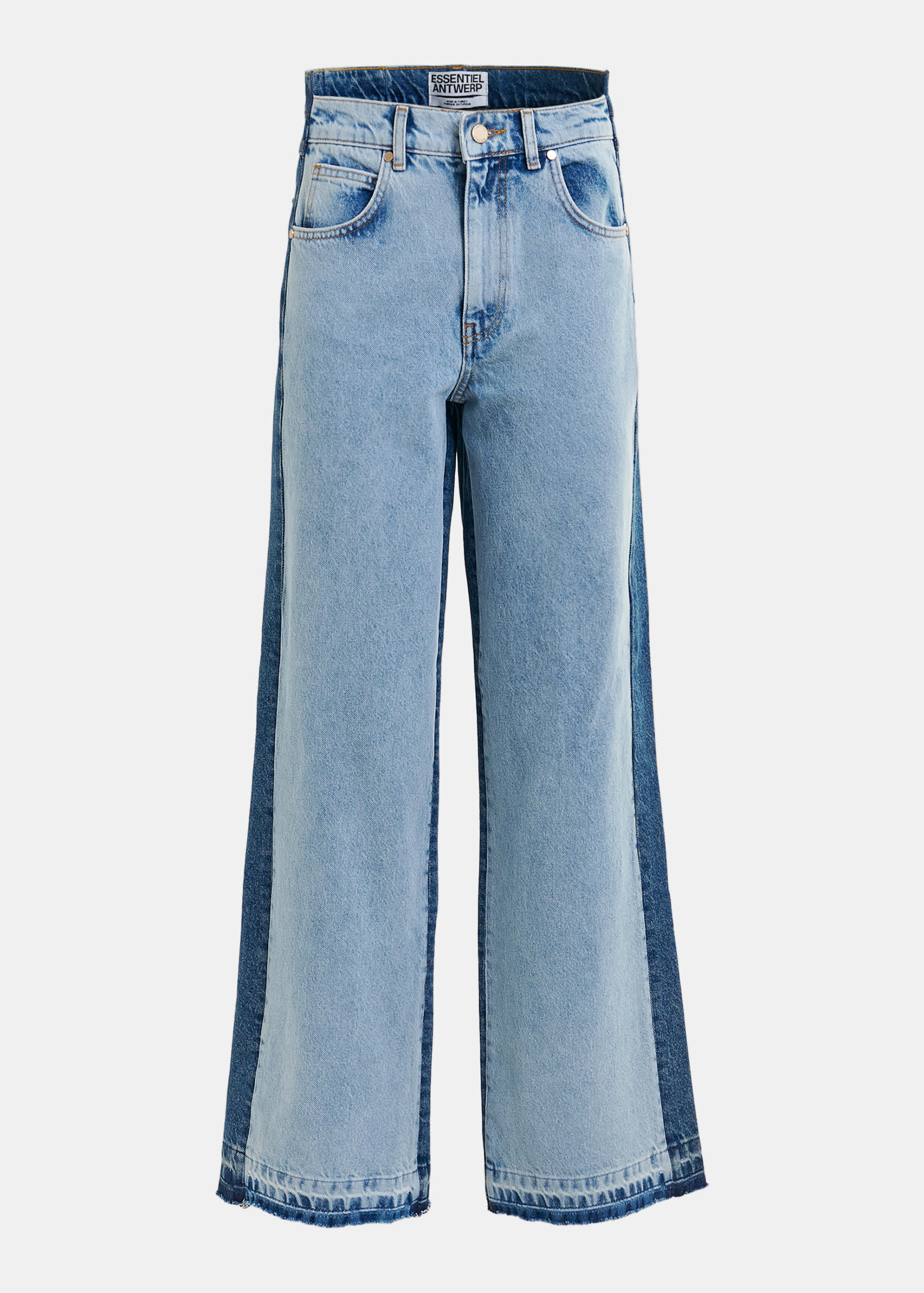 5-pocket jeans van Essentiel Antwerp met kleurcontrasten, wijde pijpen, hoge taille, knoop- en ritssluiting en ruw afgesneden zoom.
