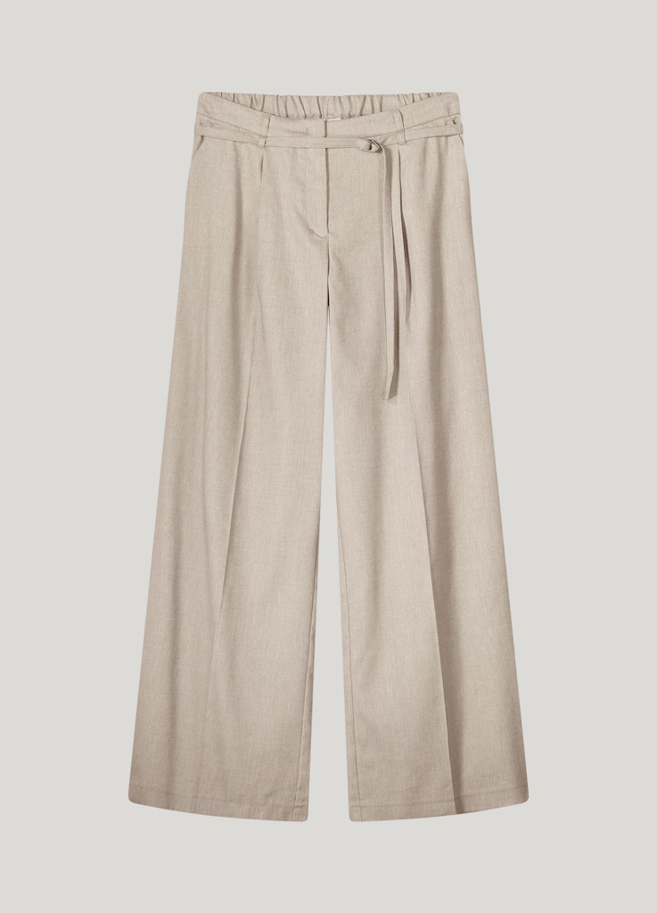 Broek van Summum in linnenlook met wijde pijpen, schuifknoop- en ritssluiting, steekzakken, fake klepzakken aan de achterzijde, elastische tailleband aan de achterzijde en een stoffen riem. Materiaal: Linnen 50%| polyester 31%| viscose 17%| elastan 2%
