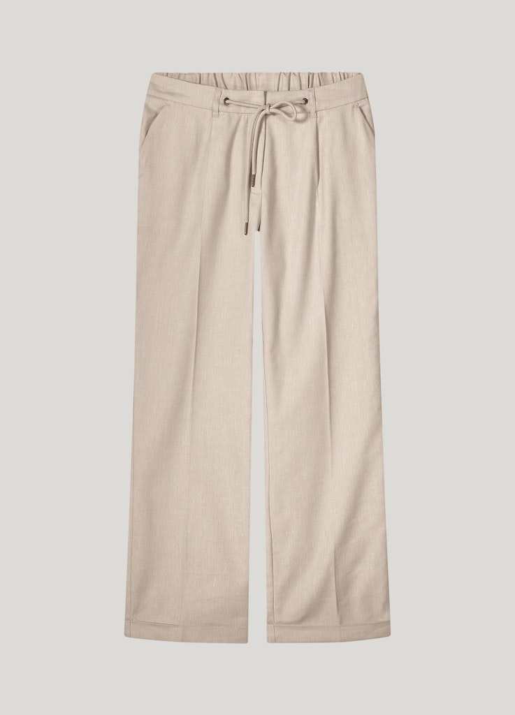 Enkellange broek van Summum in linnenblend met een omslag onderaan de pijpen, schuifknoop- en ritssluiting, sierkoord in de tailleband, steekzakken, fake paspelzakken achter en een elastische tailleband aan de achterzijde.
