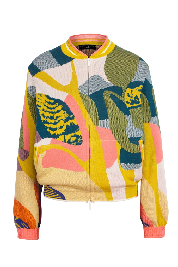 Bomber jacket van Ivko Woman in een all-over dessin met lange mouwen, ritssluiting, opstaande kraag, steekzakken en een elastische zoom.