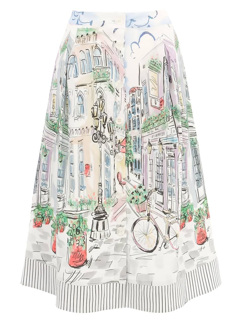 A-lijn rok van Dolcezza in een all-over dessin met steekzakken en een doorlopende knoopsluiting. Materiaal: Katoen 70%| polyamide 25%| elastan 5%