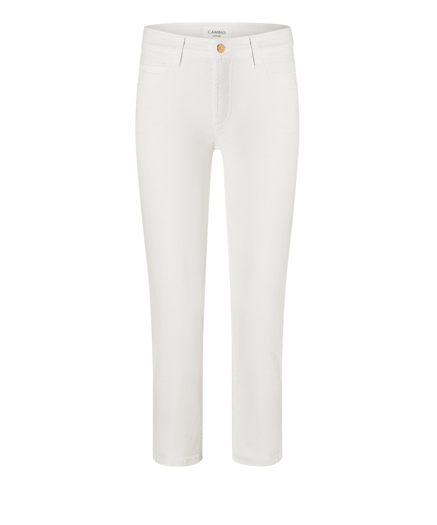 Enkellange 5-pocket broek van Cambio met een knoop- en ritssluiting. Materiaal: Katoen 85%| elastomultiester 11%| elastan 4%