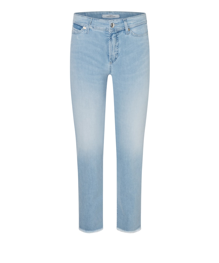 Enkellange 5-pocket jeans van Cambio met een knoop- en ritssluiting. Materiaal: Katoen 92%| elastomultiester 6%| elastan 2%
