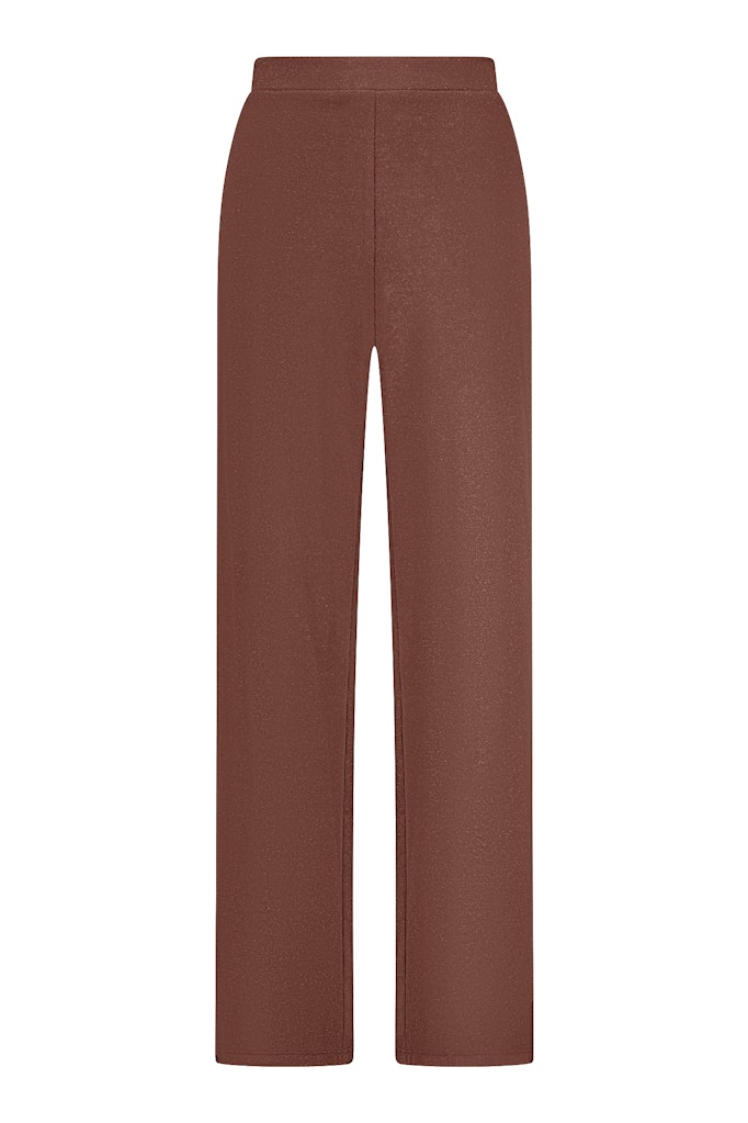 Broek van Label Dot voorzien van lurex draadje met wijde pijpen, steekzakken en een elastische tailleband aan de achterzijde.