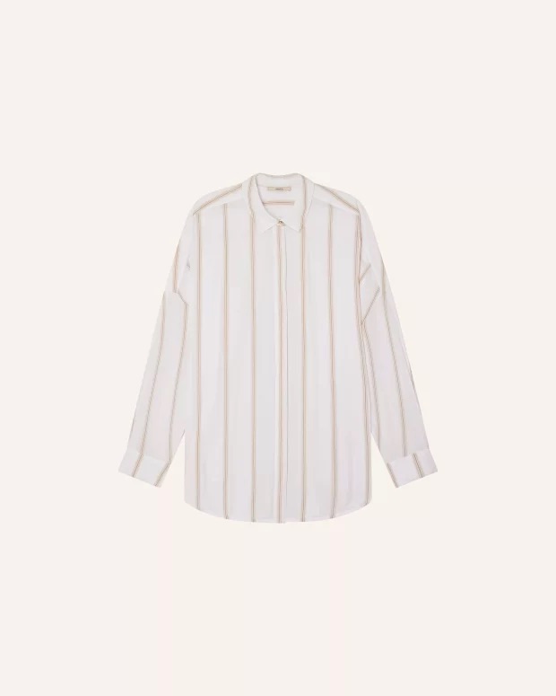 Gestreepte blouse van Sessun met lange mouwen, verlaagde schoudernaden, kraag en een verborgen knoopsluiting. Materiaal: Viscose 84%| polyamide 16%