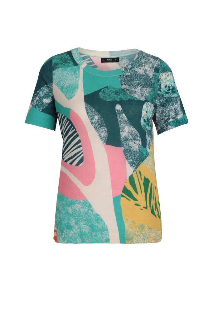 Trui van Ivko Woman in een all-over dessin met korte mouwen en een ronde hals. Materiaal: katoen 100%