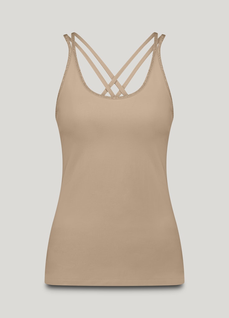 Singlet van Summum met een ronde hals en gevlochten lurex bandjes aan de achterzijde. Materiaal: Katoen 95%| elastan 5%