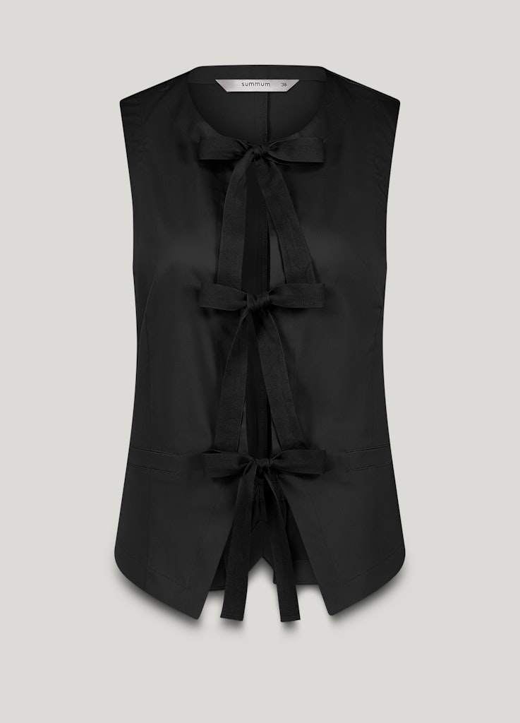 Gilet van Summum met een ronde hals, fake paspelzakken, striksluiting en stukje elastiek aan de achterzijde.