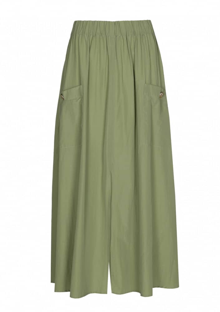 Glanzende rok van Caroline Biss met twee opgestikte zakken, hoge split middenvoor en een elastische tailleband. Materiaal: Katoen 52%| polyamide 48%