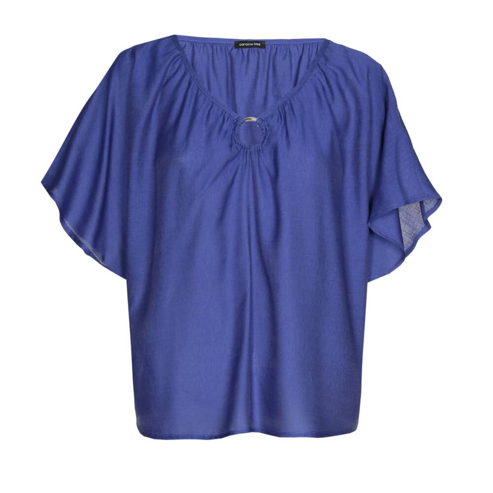 Luchtige blouse van Caroline Biss met korte vlindermouwen en een V-hals voorzien ringdetail. Materiaal: Viscose 80%| polyamide 20%