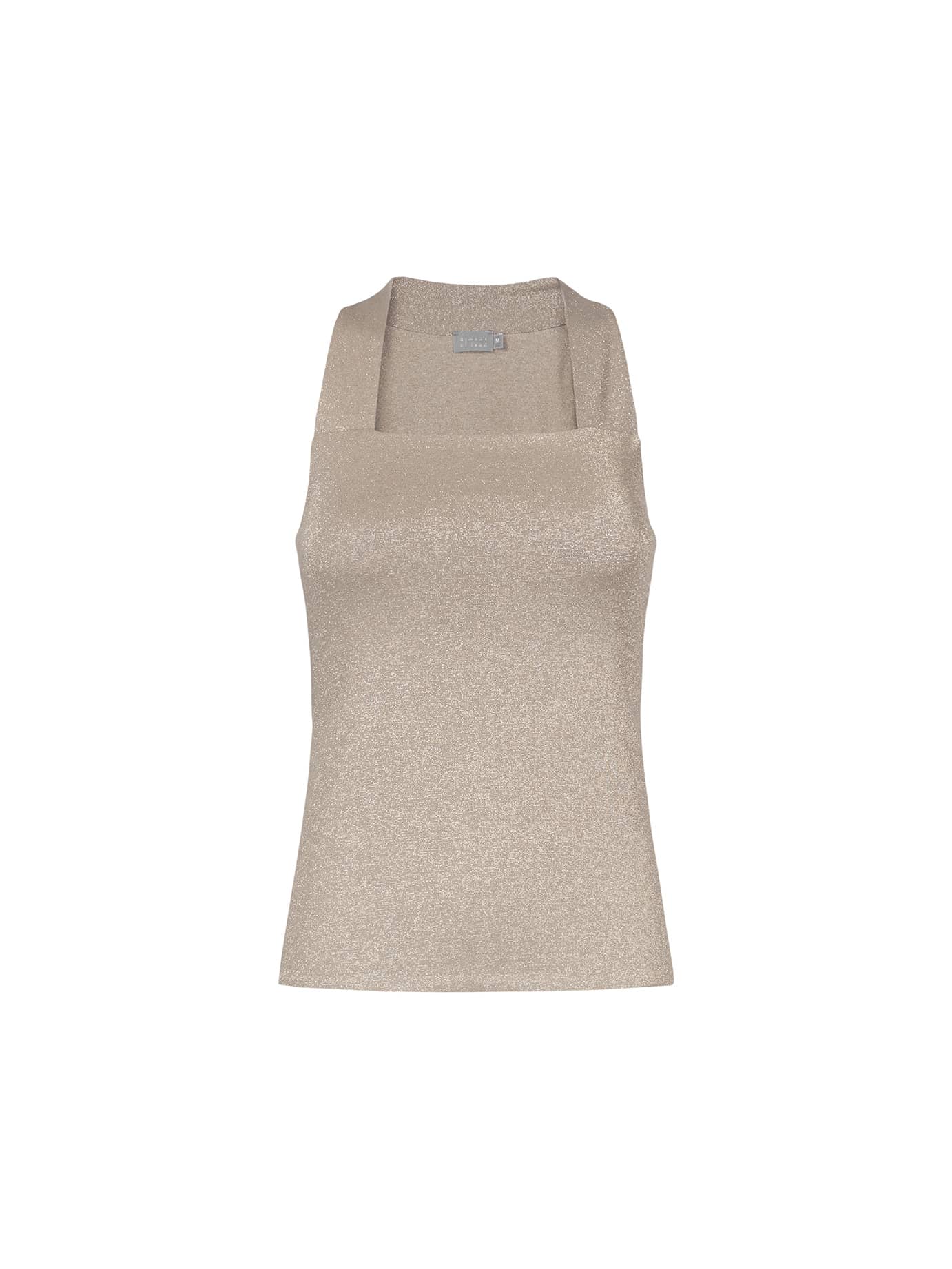 Mouwloze, lurex top van No Man's Land met een vierkante halslijn. Materiaal: Viscose 68%| polyester 13%| polyamide 12%| elastan 7%