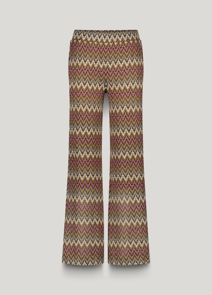 Flared broek van Summum in een jacquard zigzagpatroon met ingeweven lurex voor een subtiele glitter, elastische tailleband, steekzakken en is volledig gevoerd.
