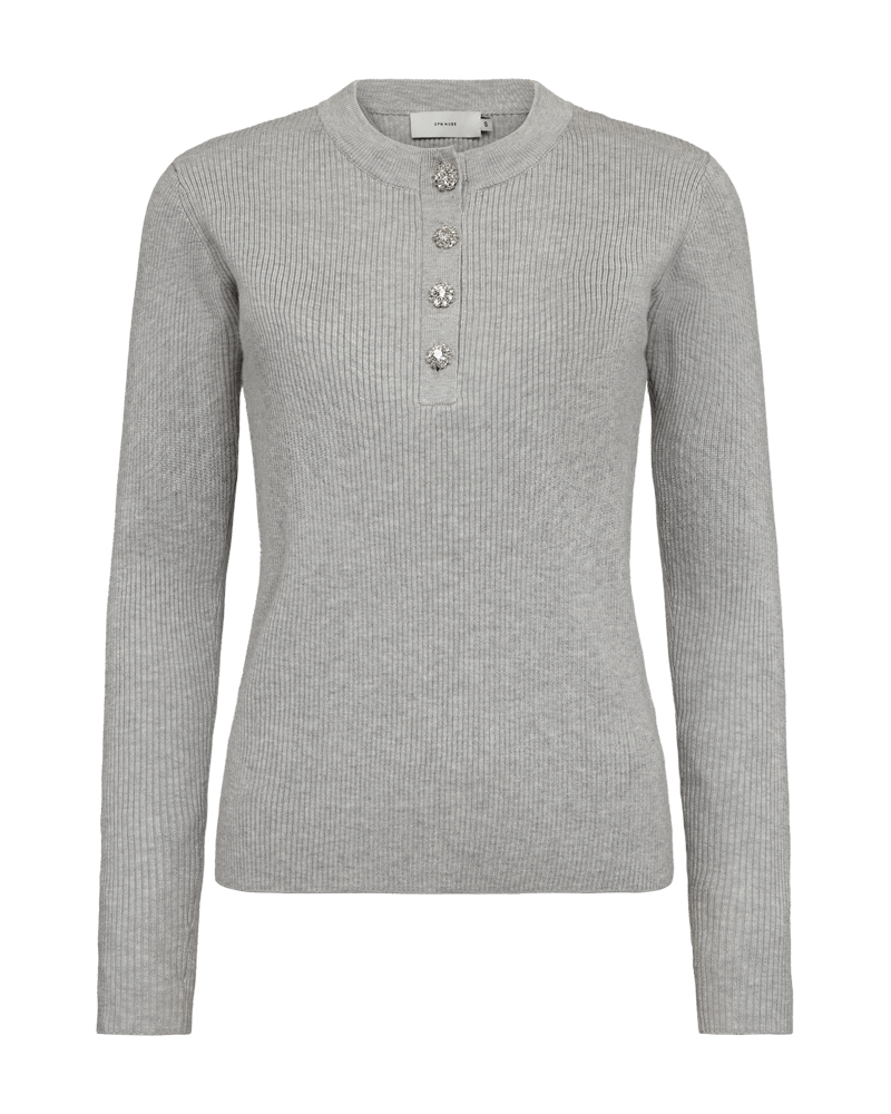 Gemêleerde trui van Copenhagen Muse in een ribstructuur met lange mouwen en een ronde hals voorzien van een prachtige knoopsluiting.