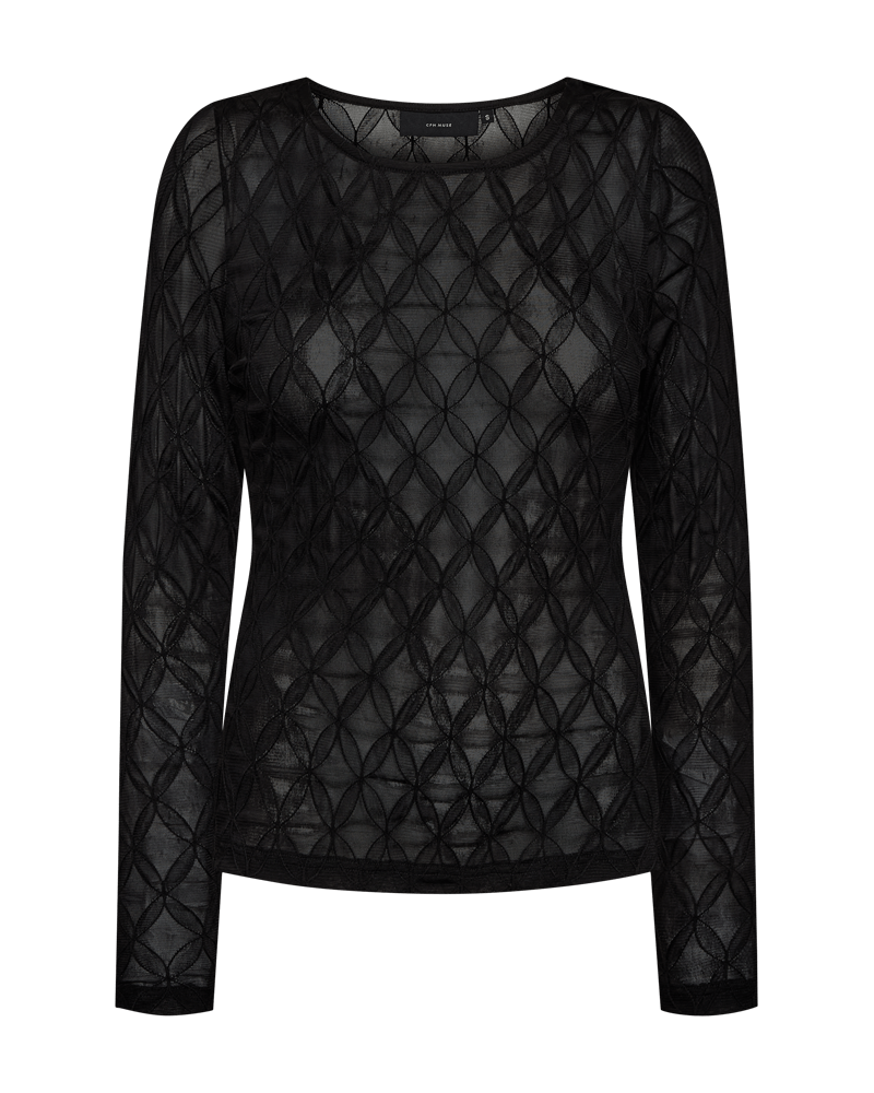 Mesh top van Copenhagen Muse in een stijlvol patroon met lange mouwen en een ronde hals.