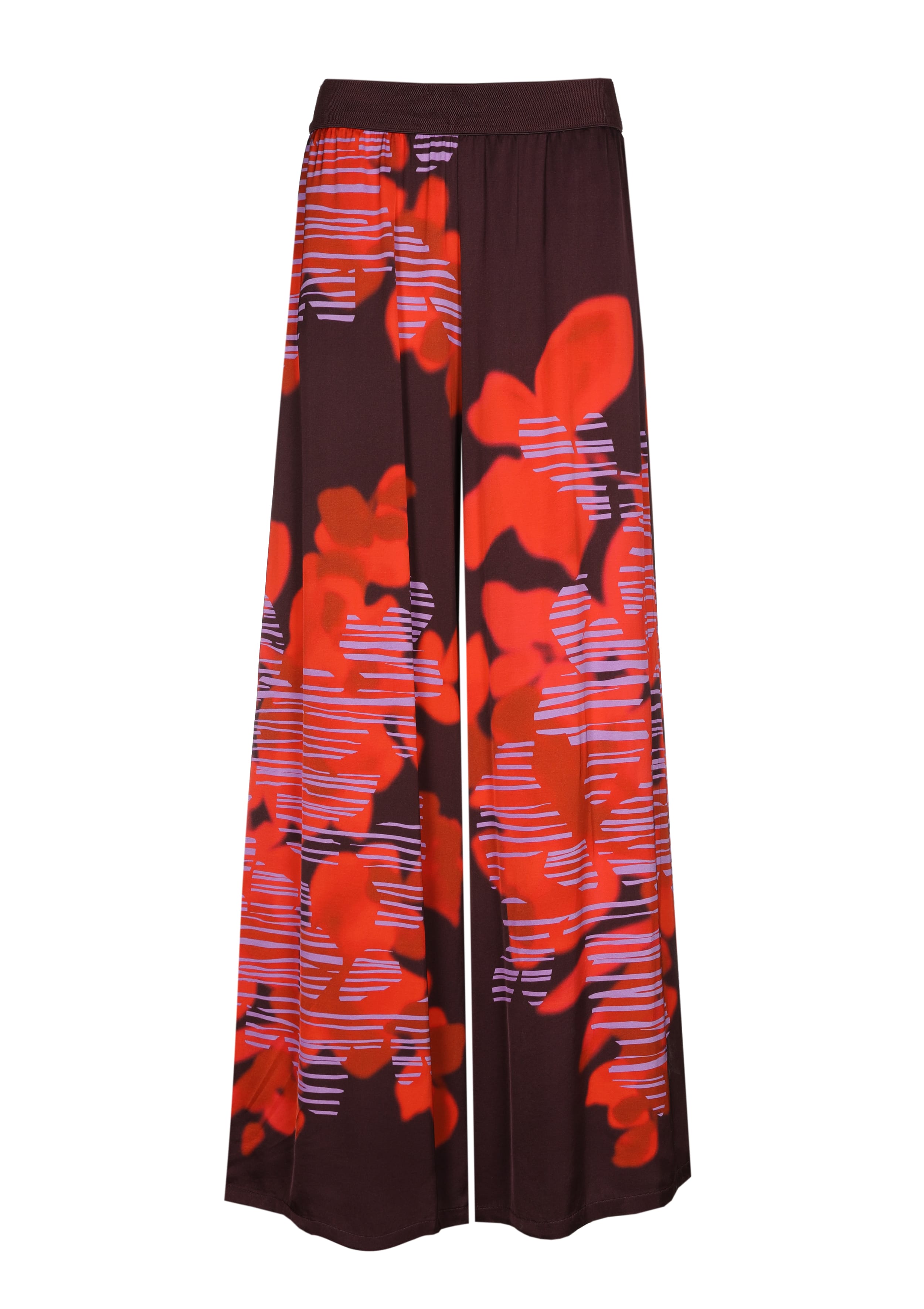 Broek van Caroline Biss in een all-over dessin met wijde pijpen, steekzakken en een elastische tailleband. Materiaal: Viscose 100%