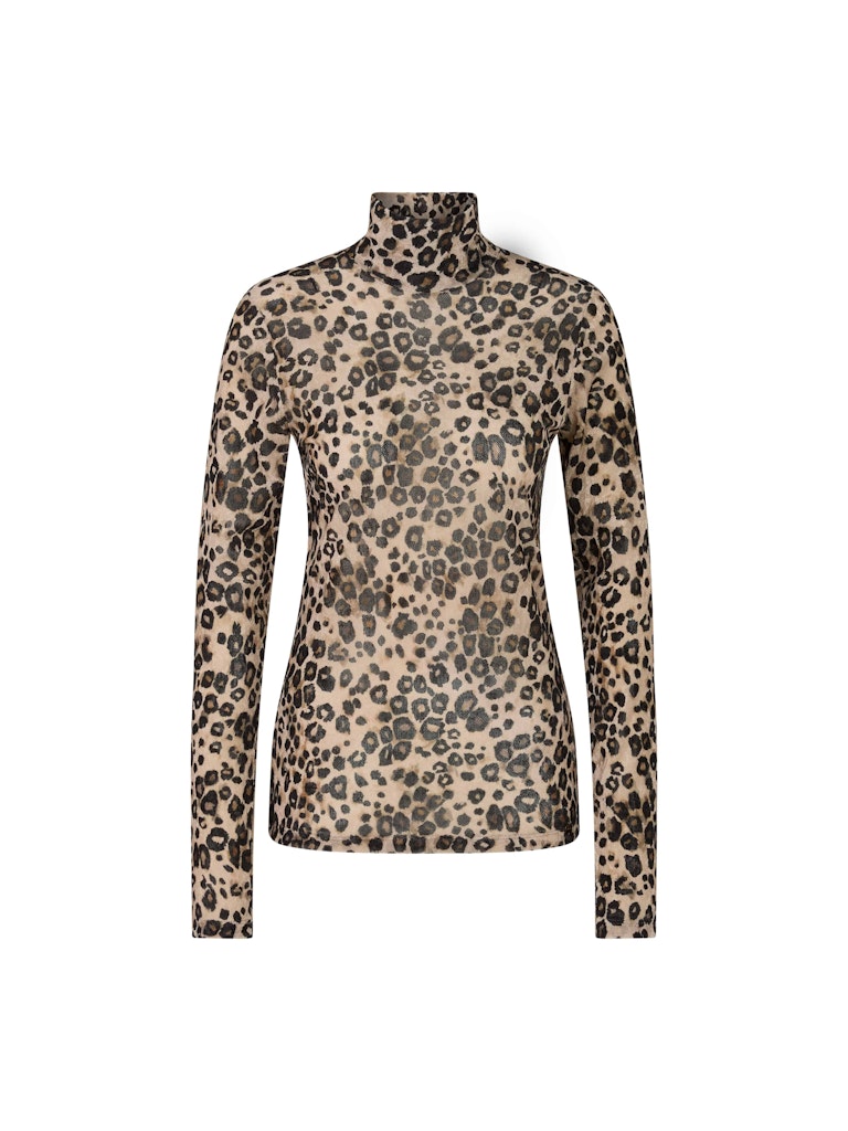 Shirt van Marc Cain in een animal dessin in een velours look met lange mouwen en een hoge turtleneck.