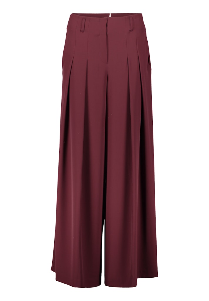 Broek van Vera Mont met extra wijde pijpen, verborgen knoop- en ritssluiting, bandplooien en steekzakken. Materiaal: Polyester 96%| elastan 4%