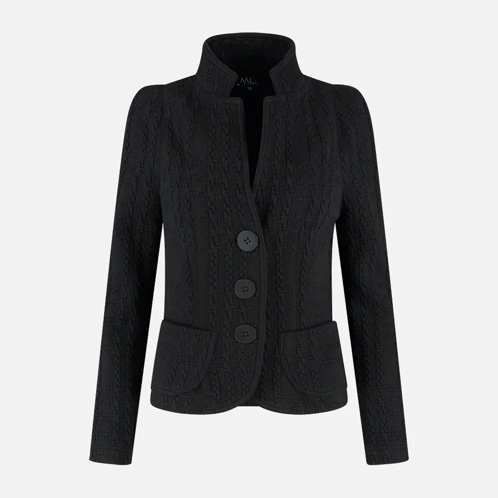 Getailleerde blazer van ML Collections in een structuur dessin met lange mouwen, opstaande reverskraag, knoopsluiting en twee opgestikte zakken.