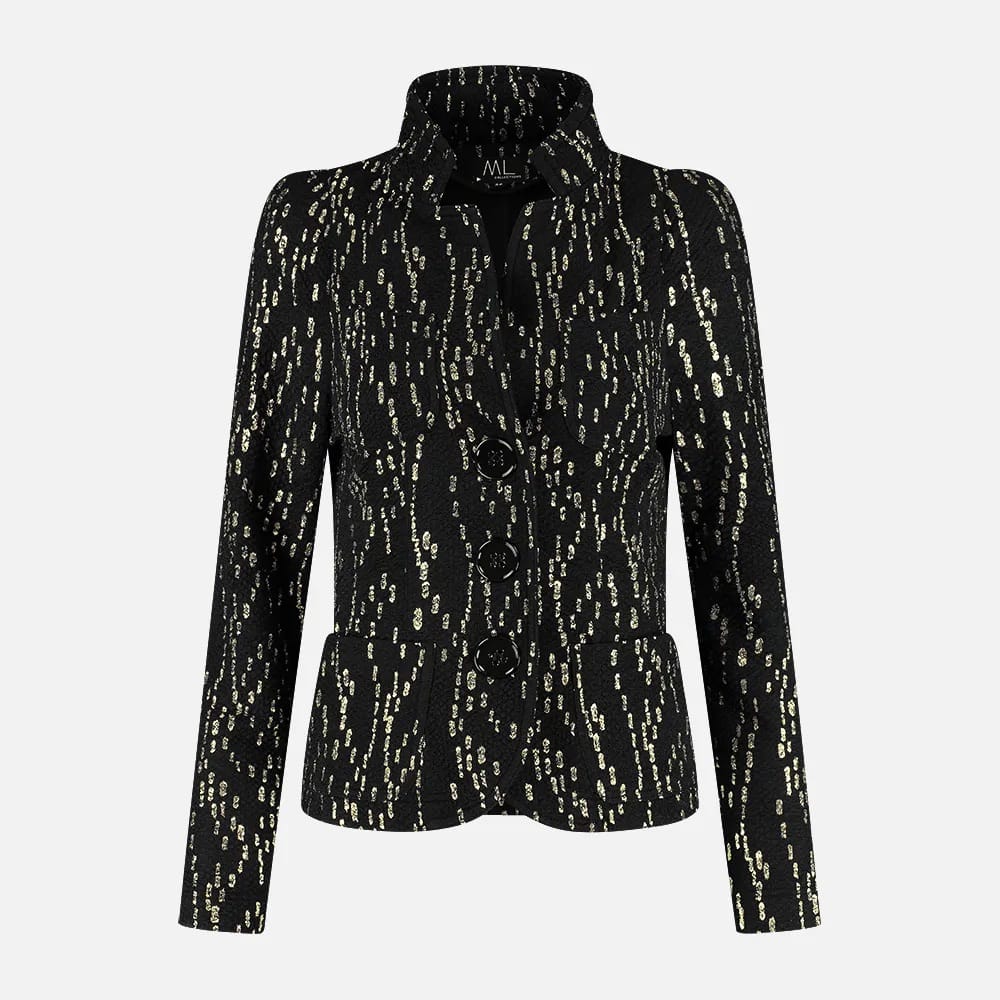 Getailleerde blazer van ML Collections in een glanzend structuur dessin met lange mouwen, opstaande reverskraag, knoopsluiting en twee opgestikte zakken.
