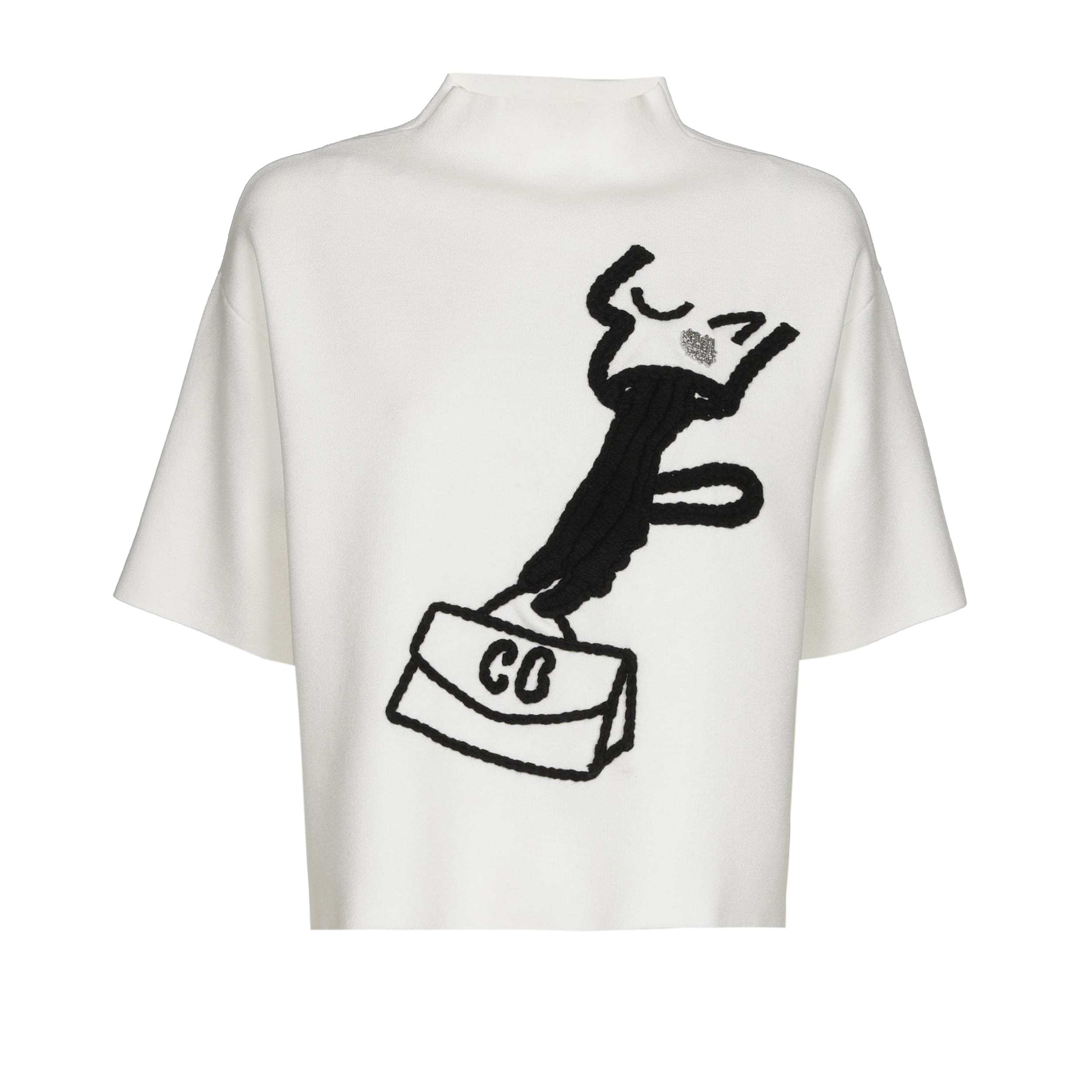 Trui van Caroline Biss met korte mouwen, turtleneck en een print aan de voorzijde. Materiaal: Viscose 72%| polyester 28%