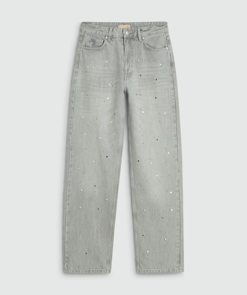 5-pocket jeans van Josh V voorzien van studs aan de voorzijde, wijde pijpen en een knoop- en ritssluiting. Materiaal: Katoen 80%| gerecycled katoen 20%