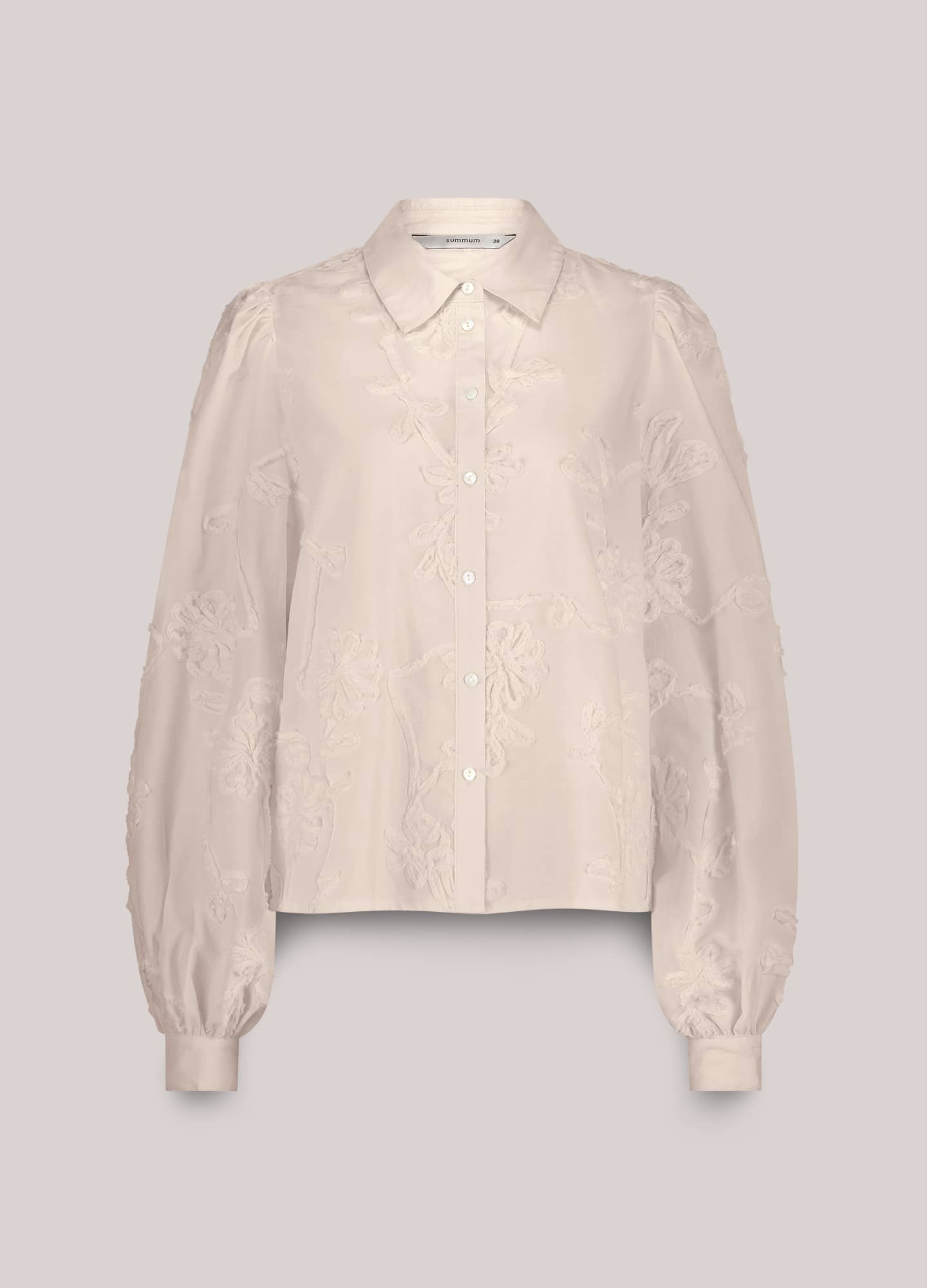 Blouse van Summum voorzien van speels borduurwerk met lange pofmouwen, kraag en een knoopsluiting. Materiaal: Katoen 100%