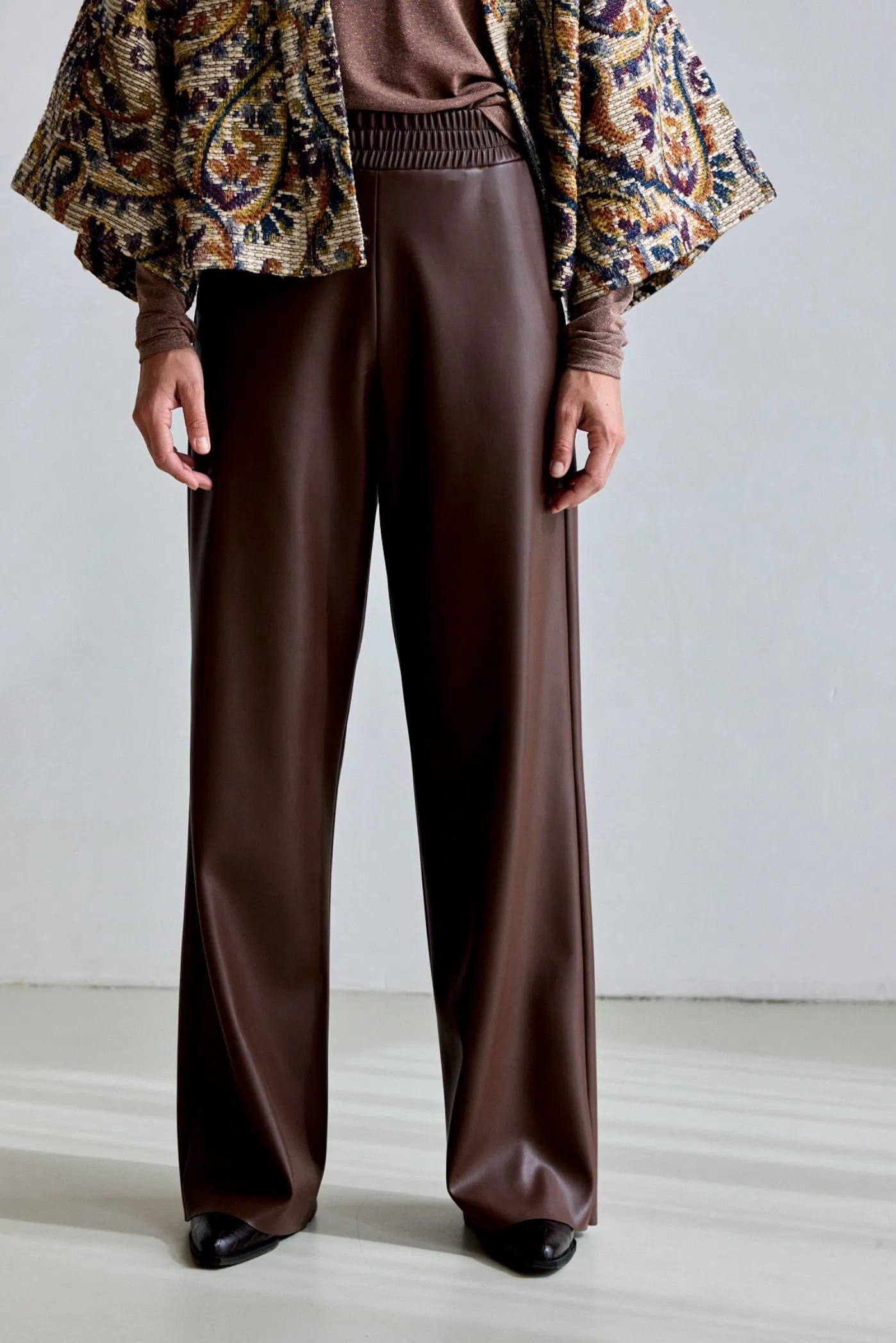Imitatie leren broek van Femmes du Sud met wijde pijpen, steekzakken en een elastische tailleband. Materiaal: PU 100%