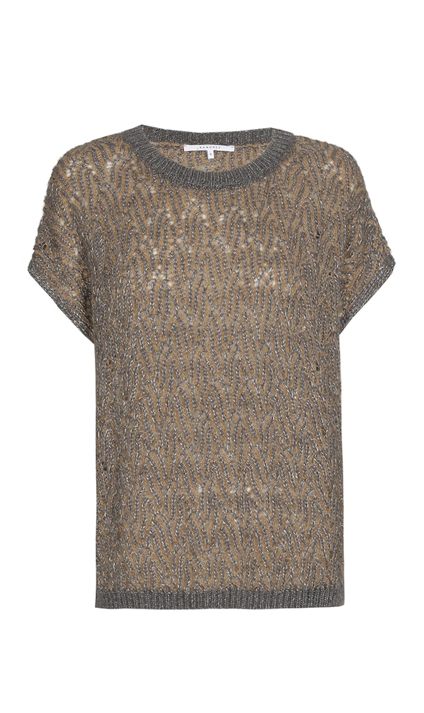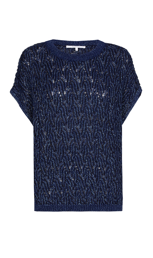 Ajour trui van Xandress met korte aangeknipte mouwen, ronde hals een ribgebreide boorden.