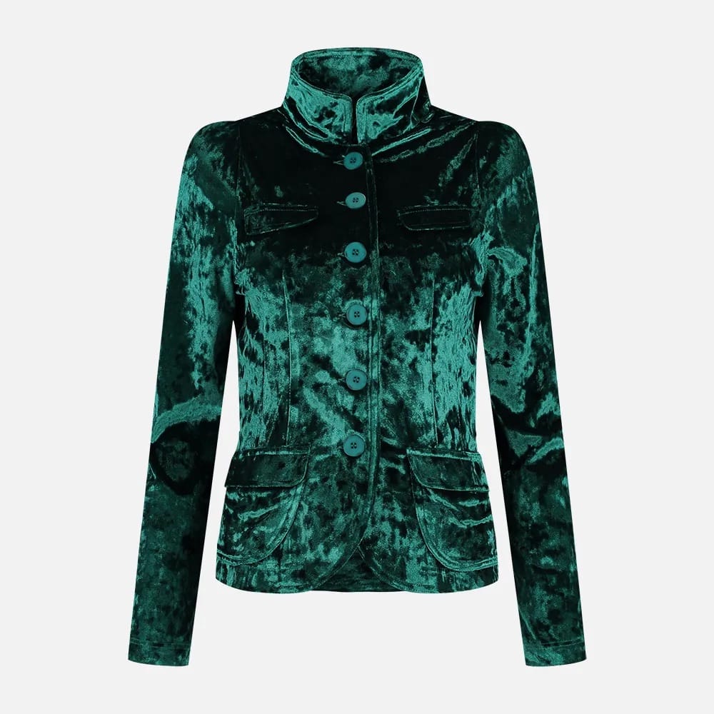 Fluwelen blazer van ML Collections met lange mouwen, opstaande kraag, knoopsluiting en twee opgestikte zakken.