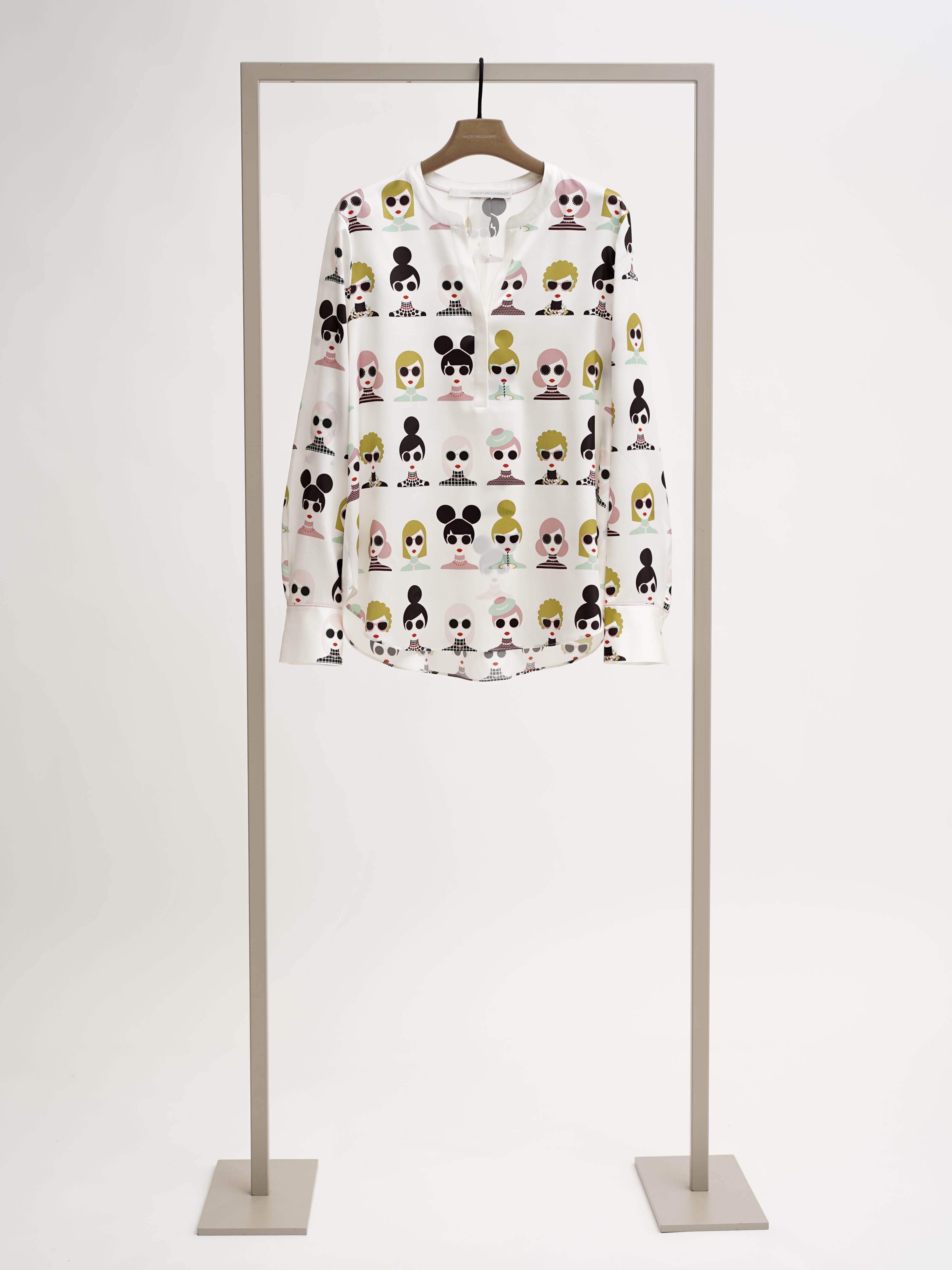 Blouse van Hertzen's Angelegenheit in een grappige gezichten dessin met lange mouwen en een ronde hals voorzien van split.