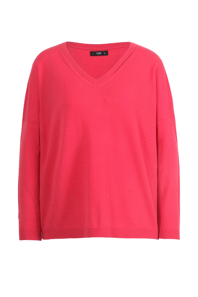 Trui van Ivko Woman met lange mouwen, V-hals en ribgebreide boorden. Materiaal: Wol 100%