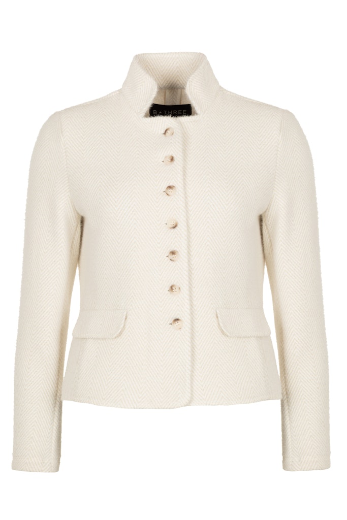 Blazer van B Three in een structuurstof met lange mouwen, knoopsluiting, klepzakken en een opstaande kraag.