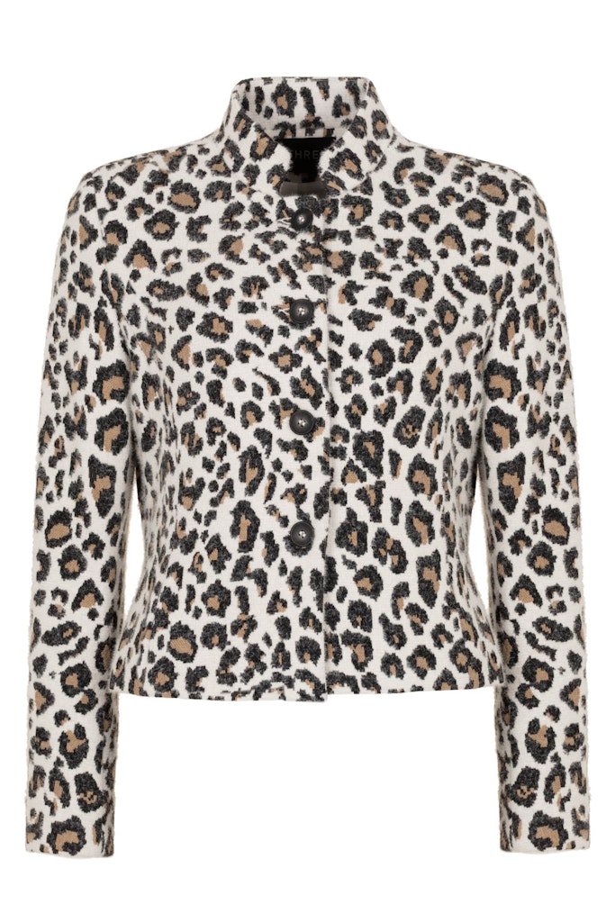 Blazer van B Three in een all-over luipaard dessin met lange mouwen, knoopsluiting en een opstaande kraag.