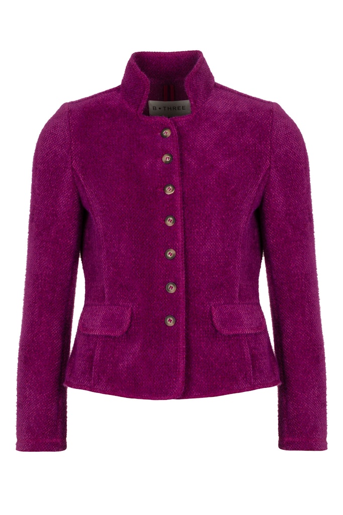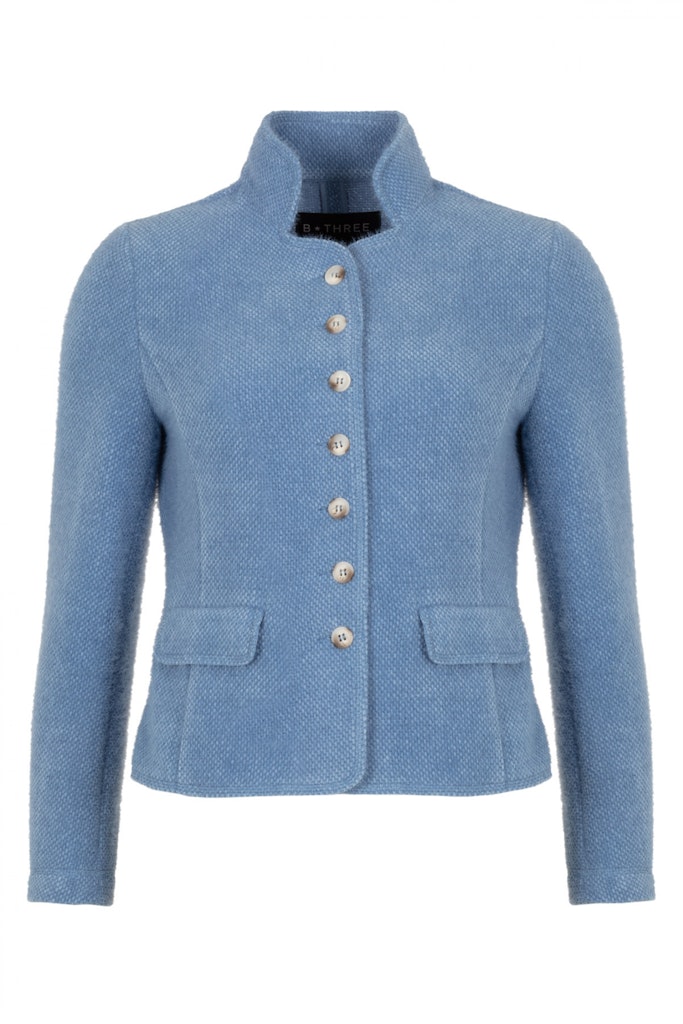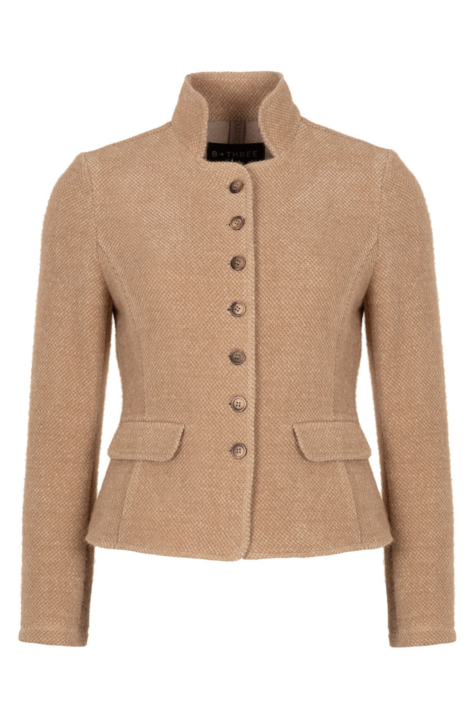 Blazer van B Three in een structuurstof met lange mouwen, knoopsluiting, klepzakken en een opstaande kraag.