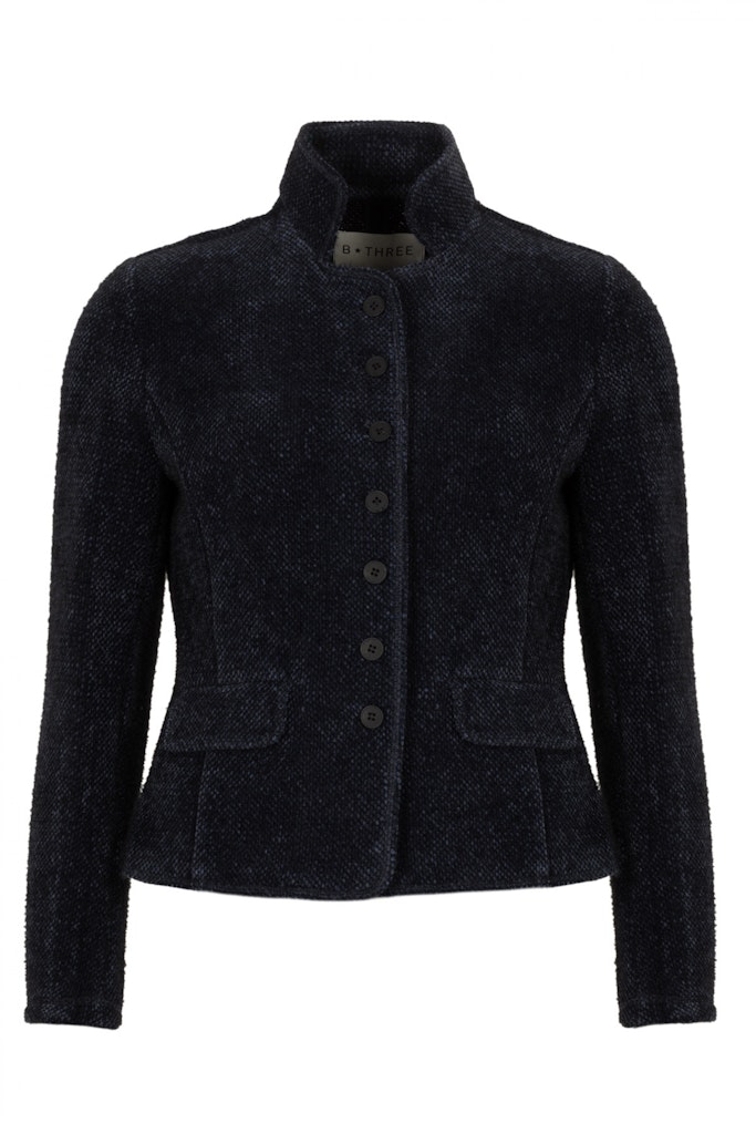 Blazer van B Three in een structuurstof met lange mouwen, knoopsluiting, klepzakken en een opstaande kraag.