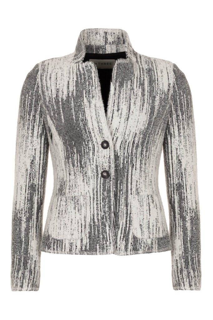 Blazer van B Three in een structuurstof met lange mouwen, knoopsluiting, opgestikte zakken en een opstaande kraag.