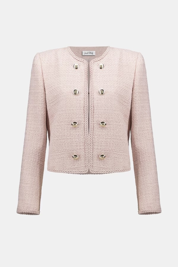 Openvallende korte blazer van Joseph Ribkoff in een structuur dessin met lange mouwen, ronde hals en versierd met knopen. Materiaal: Polyester 95%| wol 5%