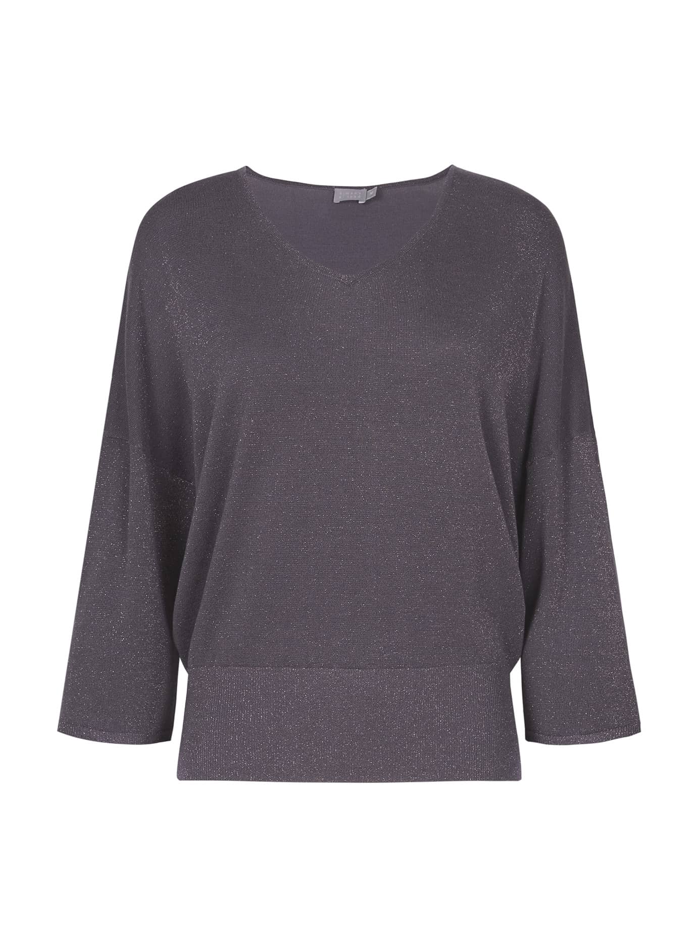 Lurex trui van No Man's land met driekwart mouwen, verlaagde schoudernaden, V-hals en een brede ribgebreide boord aan de onderzijde.