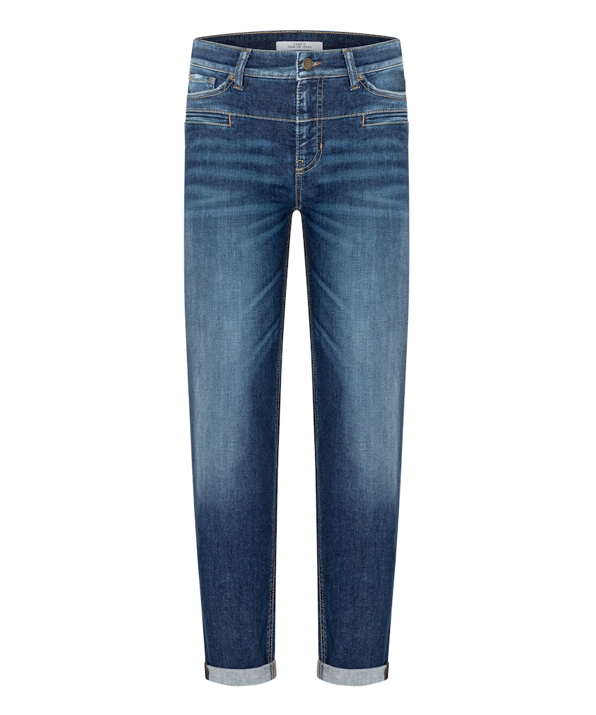 5-pocket jeans van Cambio met een knoop- en ritssluiting, paspelzak detail aan de voorzijde en een omslag in de pijpen.
