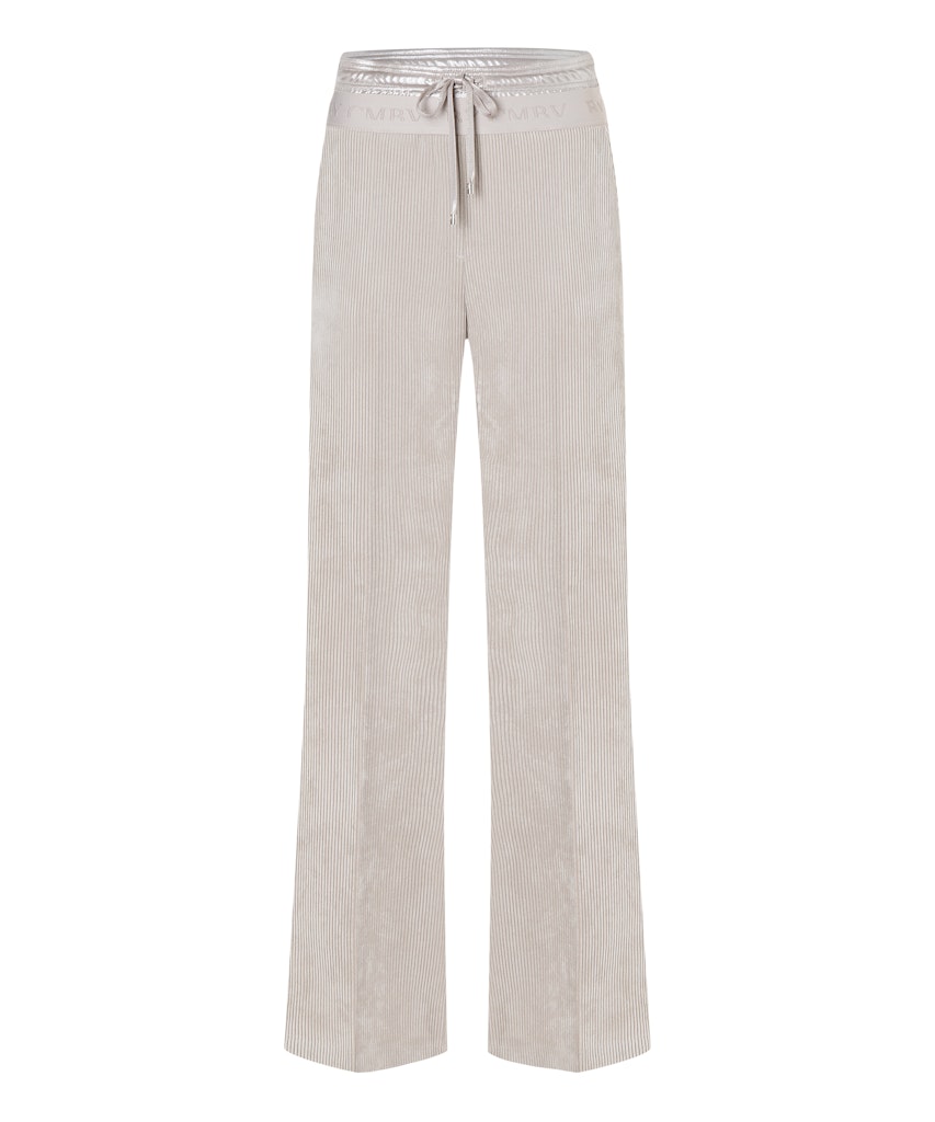 Broek van Cambio met wijde pijpen, steekzakken, twee paspelzakken aan de achterzijde en een dubbele elastische tailleband voorzien van trekkoord. Materiaal: Polyester 90%| polyamide 8%| elastan 2%