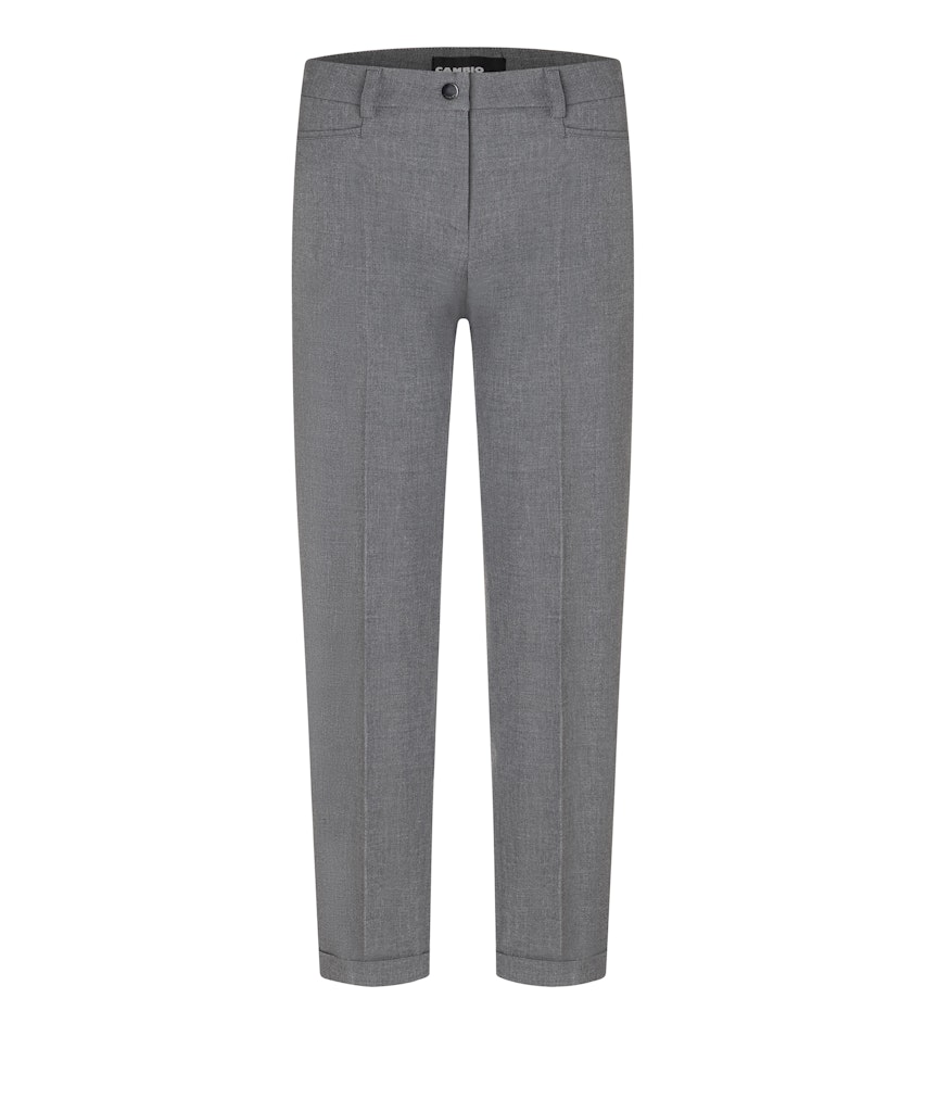 Gemêleerde 7/8 broek van Cambio met taps toelopende pijpen voorzien van omslag, knoop- en ritssluiting, steekzakken en twee paspelzakken aan de achterzijde.
