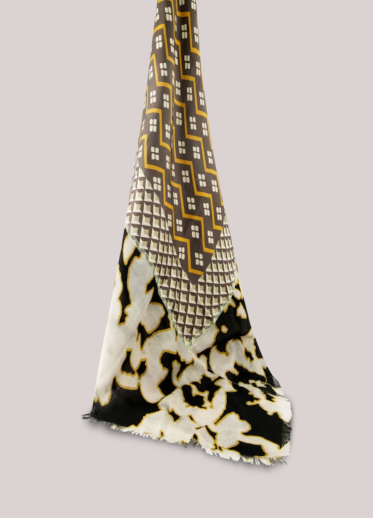 Sjaal van Summum in een all-over dessin met gerafelde randen. Materiaal: Viscose 100%