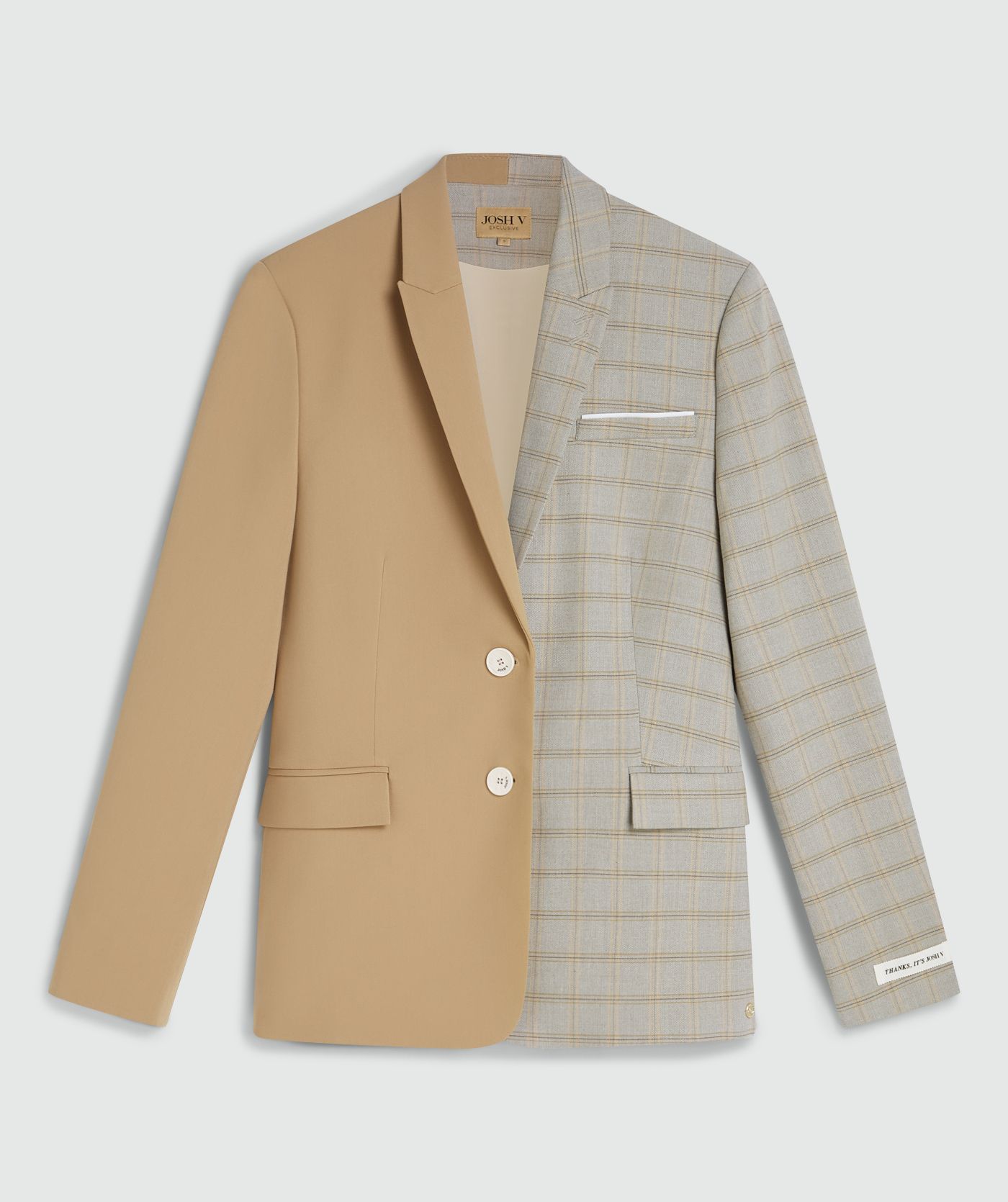 Oversized two-tone blazer van Josh V met lange mouwen, reverskraag, knoopsluiting, paspelzakje op de borst, twee klepzakken en een split aan de achterzijde.