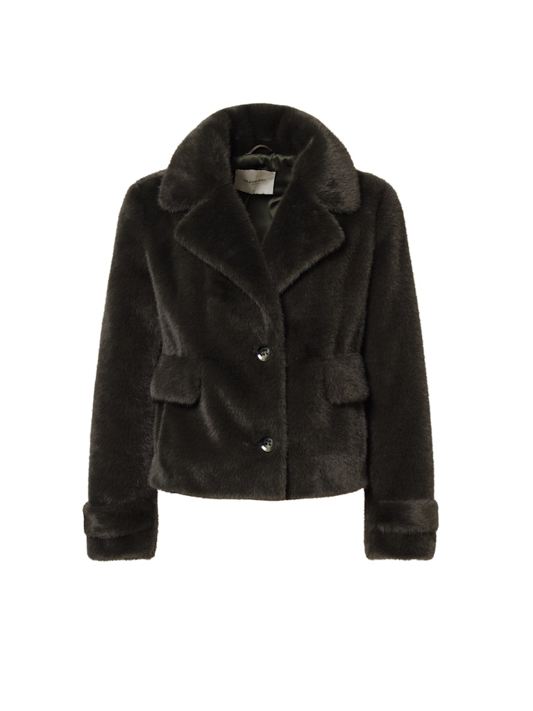Fake fur korte jas van Beaumont met een reverskraag, knoopsluiting en twee klepzakken. Materiaal: Polyester 100%