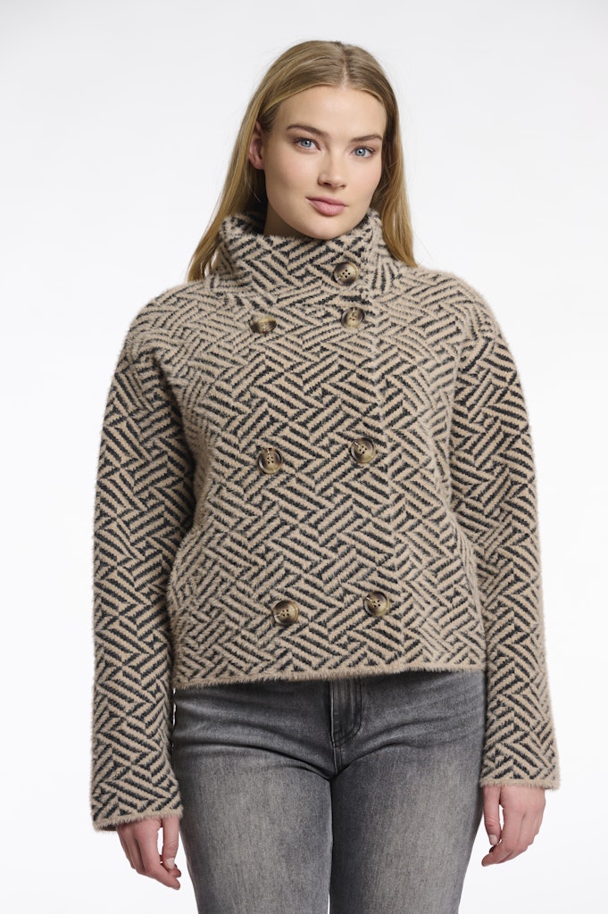 Kort jack van Rino & Pelle in een zacht geweven dessin met opstaande kraag, double breasted en twee steekzakken.