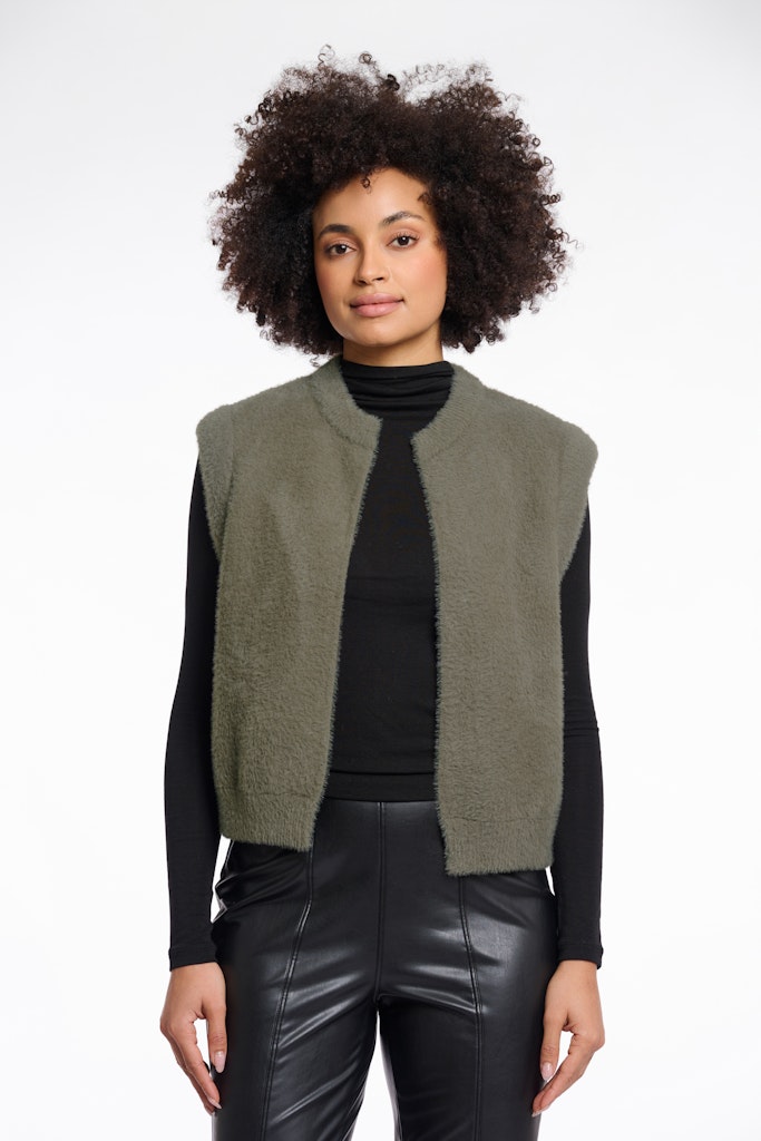 Zacht gilet van Rino & Pelle met een ronde hals en een verstelbare tailleband. Materiaal: Polyamide 59%| polyester 26%| viscose 15%