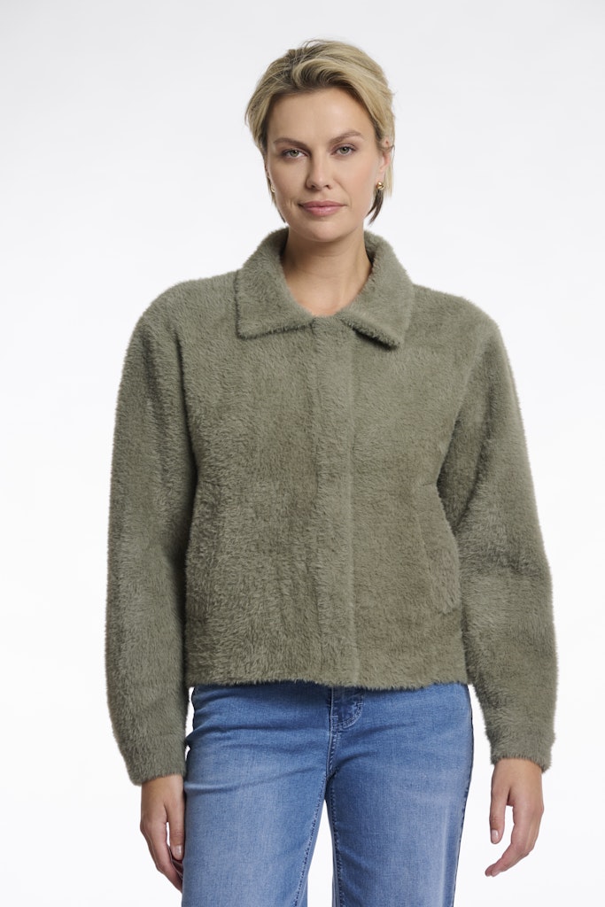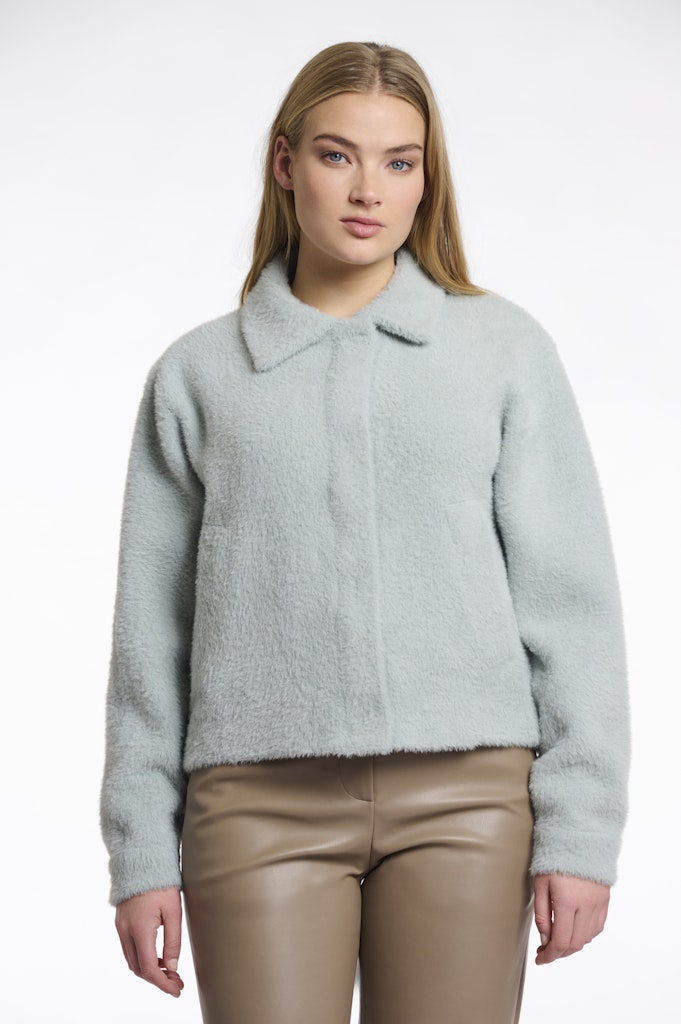 Boxy zacht jacket van Rino & Pelle met lange mouwen, kraag, steekzakken en een verborgen drukknoopsluiting.