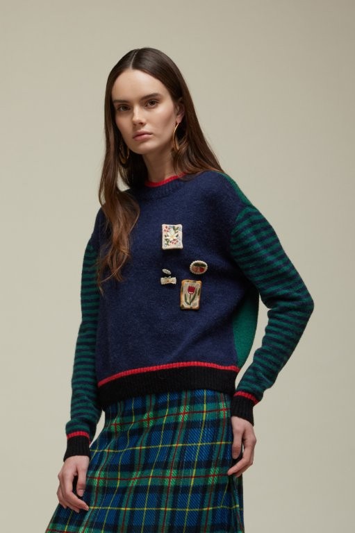 Multicolor, oversized trui van Jei's met applicaties, lange mouwen en ronde hals.